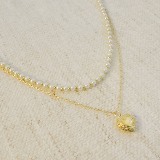 Pearl and Gold Amour Locket Necklace
